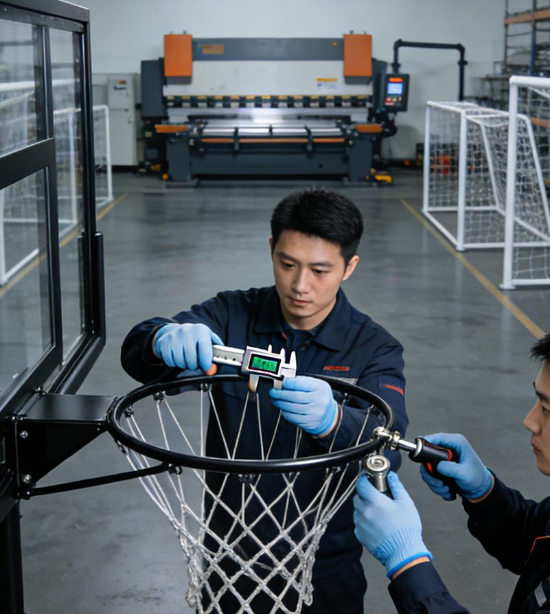 All basketball systems and sports equipment are tested according to international standards to guarantee strength, safety, durability, and long service life in both indoor and outdoor environments.
